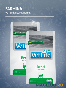 FARMINA VET LIFE FELINE RENAL – рацион с низким содержанием белка и фосфора, которое снижает симптомы почечной недостаточности высокого качества и улучшают состояние животного.