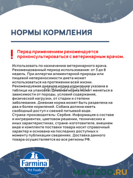 Информация о составе и ингредиентах, цветовом решении, технических и иных характеристиках, стране-изготовителе, внешнем виде и комплекте поставки товара носит справочный характер и основана на последних доступных к моменту публикации сведениях. Доставка данного товара осуществляется во все регионы РФ.Продукция FARMINA является современным стандартом безупречного качества корма. Натуральные компоненты, минеральные вещества, витамины позволяют создавать сбалансированное питание по оптимальной цене. Продукция изготавливается из сырья итальянского, французского и датского производства. FARMINA производит свою продукцию на трех собственных фабриках, которые расположены в трех странах: Италия, Бразилия и Сербия.