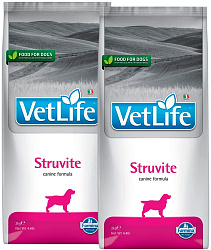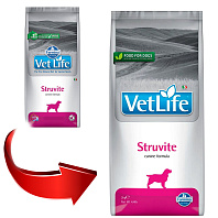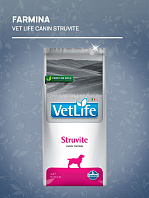FARMINA VET LIFE CANIN STRUVITE — рацион, введение в рецептуру которого сульфата кальция создает и поддерживает оптимальный рН мочи для подавления образования и растворения струвитов. Состав корма создает неблагоприятные условия для бактериальной пролиферации. Низкая концентрация белков, кальция, фосфора и магния создает неблагоприятную ситуацию для агрегации и кристаллизации осадков.