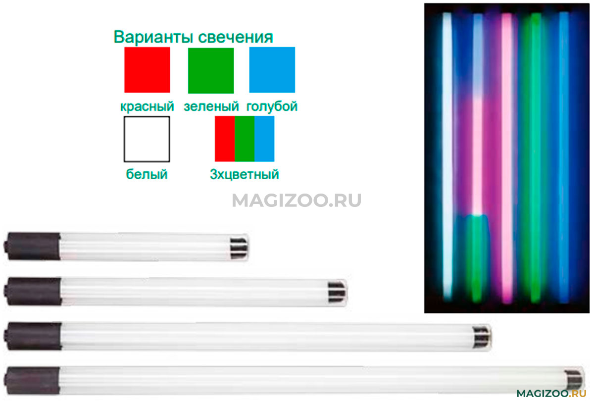 - Спектр свечения лампы специально разработан для эффективной окраски рыб и стимуляции роста растений.