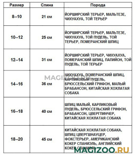 Рекомендуемые породы в списке приведены для справки. Отдельные собаки могут значительно различаться по своим размерам.