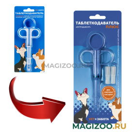 Интродьюсер плюс с двумя мягкими многоразовыми наконечниками для быстрого и безопасного введения лекарственных средств в твердых и жидких формах домашним животным.
