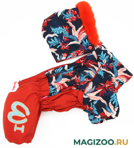 Теплый комбинезон для Вашего питомца из водоотталкивающего полиэстера на подкладке из синтепона и велюра. Удобно одевать и снимать.