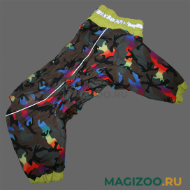 Теплый комбинезон для Вашего питомца из водоотталкивающего полиэстера на подкладке из плюшевого меха. Удобно одевать и снимать.
