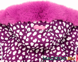 Высокий капюшон, украшенный красивым мягким мехом, закрывает шею собаки и защищает ее от ветра.