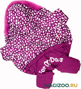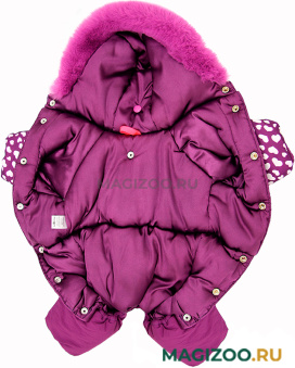 Теплый комбинезон для Вашего питомца из водоотталкивающего полиэстер на подкладе из шелка и синтепона. Удобно одевать и снимать.