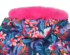 Высокий капюшон, украшенный красивым мягким мехом, закрывает шею собаки и защищает ее от ветра.
