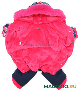 Теплый комбинезон для Вашего питомца из водоотталкивающего полиэстера, синтепона и плюшевого меха. Удобно одевать и снимать.