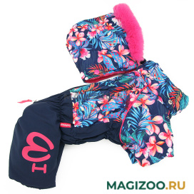 Теплый комбинезон для Вашего питомца из водоотталкивающего полиэстера на подкладке из синтепона и шелка. Удобно одевать и снимать.