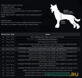 Размерная сетка, в первую очередь, ориентирована на длину тела собаки, как показано на картинке «Как измерять собаку».