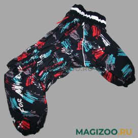 Теплый комбинезон для Вашего питомца из водоотталкивающего полиэстера на подкладке из плюшевого меха. Удобно одевать и снимать.