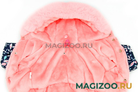 Высокий капюшон, украшенный красивым мягким мехом, закрывает шею собаки и защищает ее от ветра.