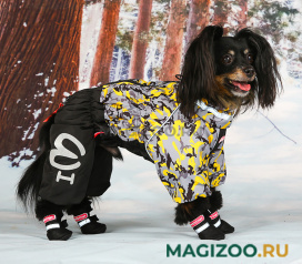 Светоотражающий принт на штанишках , кант в пройме и лента на горловине обеспечивают дополнительную безопасность Вашего питомца во время прогулок в темное время суток.