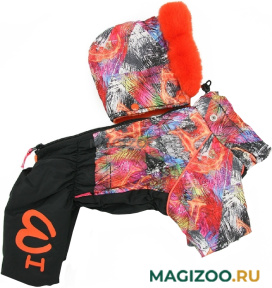 Теплый комбинезон для Вашего питомца из водоотталкивающего полиэстера на подкладке из синтепона и плюшевого меха. Удобно одевать и снимать.