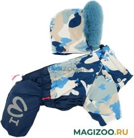 Теплый комбинезон для Вашего питомца из водоотталкивающего полиэстера на подкладке из синтепона и шелка. Удобно одевать и снимать.