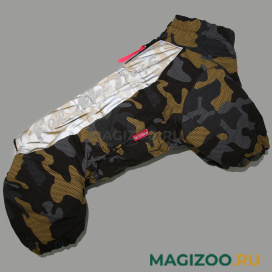 Теплый комбинезон для Вашего питомца из водоотталкивающего полиэстера на подкладе из синтепона и искусственного меха. Удобно одевать и снимать.