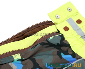 Теплый комбинезон для Вашего питомца из водоотталкивающего полиэстера на подкладке из плюшевого меха. Удобно одевать и снимать.