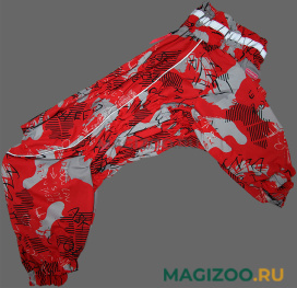 Теплый комбинезон для Вашего питомца из водоотталкивающего полиэстера на подкладке из плюшевого меха. Удобно одевать и снимать.