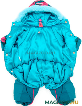 Теплый комбинезон для Вашего питомца из водоотталкивающего полиэстера на подкладке из синтепона и шелка. Удобно одевать и снимать.