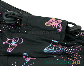Теплый комбинезон для собак породы Такса из красивого полиэстера с металлизированным принтом "Бабочки" на подкладке из плюшевого меха. Удобно одевать и снимать.