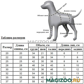 Размерная сетка, в первую очередь, ориентирована на длину тела собаки, как показано на картинке «Как измерять собаку».