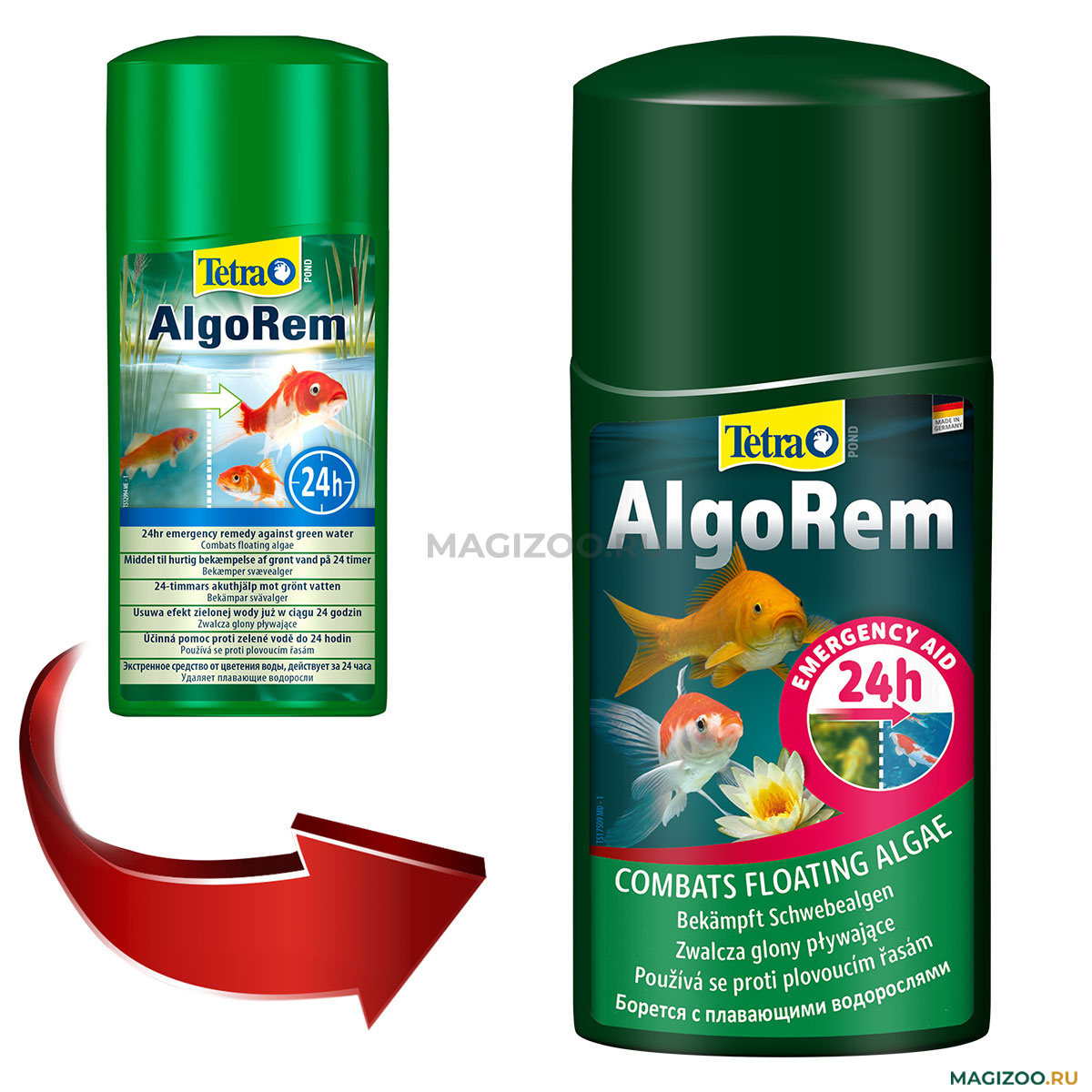 - Удаляет плавающие водоросли (цветение воды) в течение 24 часов.