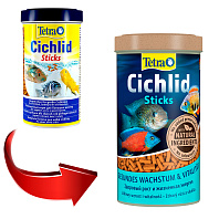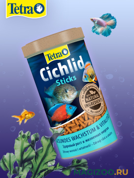 Корм в палочках, специально предназначенный для всех видов цихлид и других крупных декоративных рыб, предпочитающих питание с поверхности воды.