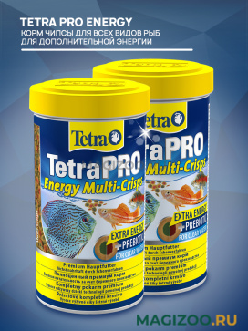 Линейка кормов TetraPRO устанавливает новый стандарт в питании рыб. Этот высококачественный полноценный корм производится по бережной технологии, что обеспечивает TetraPRO Energy очень высокую питательную ценность и стабильность витаминов. Энергетический концентрат в мульти-чипсах содержит муку из криля для поддержания жизненной силы рыб. Двухцветные мульти-чипсы впитывают меньше воды, чем обычные хлопья, что увеличивает содержание питательных веществ на единицу объема.