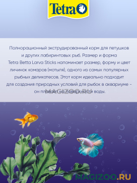 Размер и форма Tetra Betta Larva Sticks напоминает