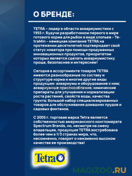 Информация о составе и ингредиентах, цветовом решении, технических и иных характеристиках, стране-изготовителе, внешнем виде и комплекте поставки товара носит справочный характер и основана на последних доступных к моменту публикации сведениях. Доставка данного товара осуществляется во все регионы РФ.Сегодня в ассортименте товаров TETRA имеются разнообразные по составу и структуре корма и многие другие виды продукции: аквариумы и оборудование к ним; аквариумные приспособления; химические препараты для улучшения и нормализации роста растений, свойств воды, качества грунта; большой набор специализированных товаров для обслуживания домашних прудов и садовых фонтанов.