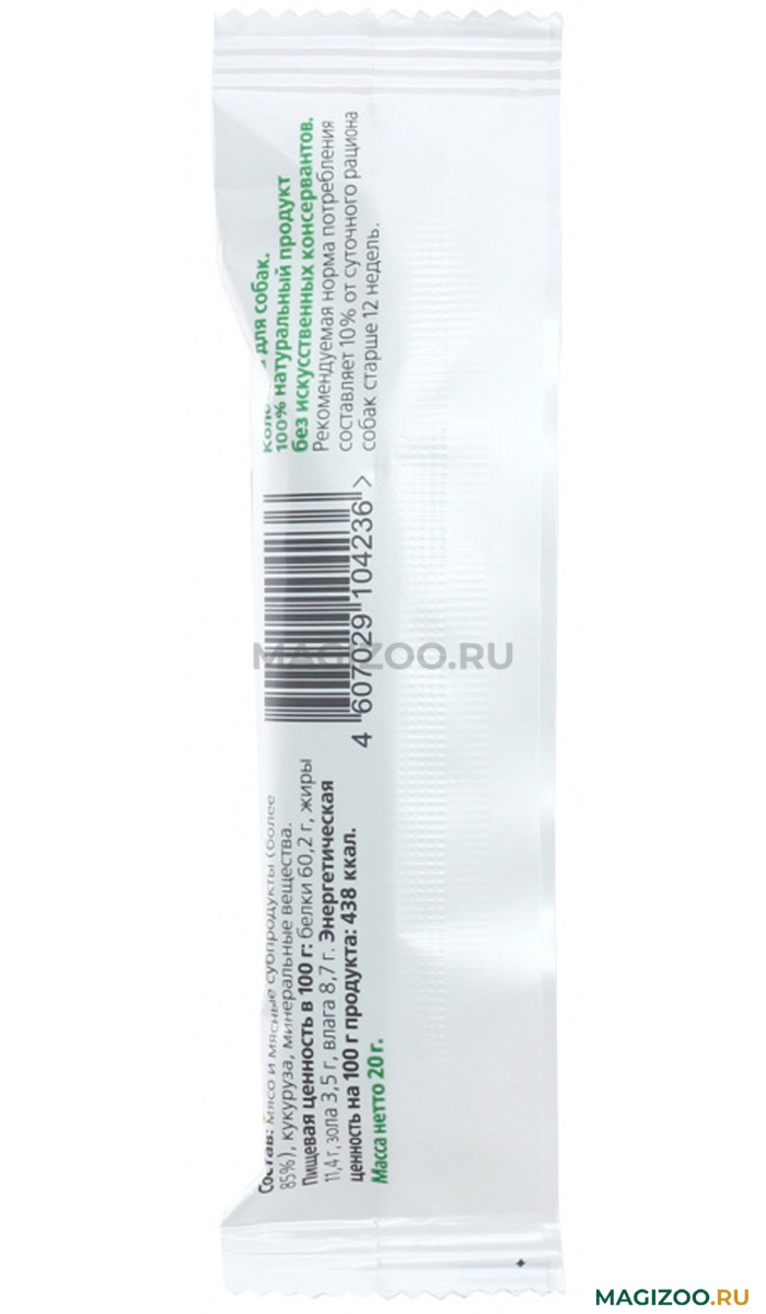 Вкусное и полезное лакомство для собак всех пород. Колбаска изготовлена из натуральных продуктов без добавления искусственных красителей, наполнителей и консервантов. Лакомство хорошо сочетается с любым типом кормления. Колбаски очищают зубы от зубного налета и предотвращают образование зубного камня.