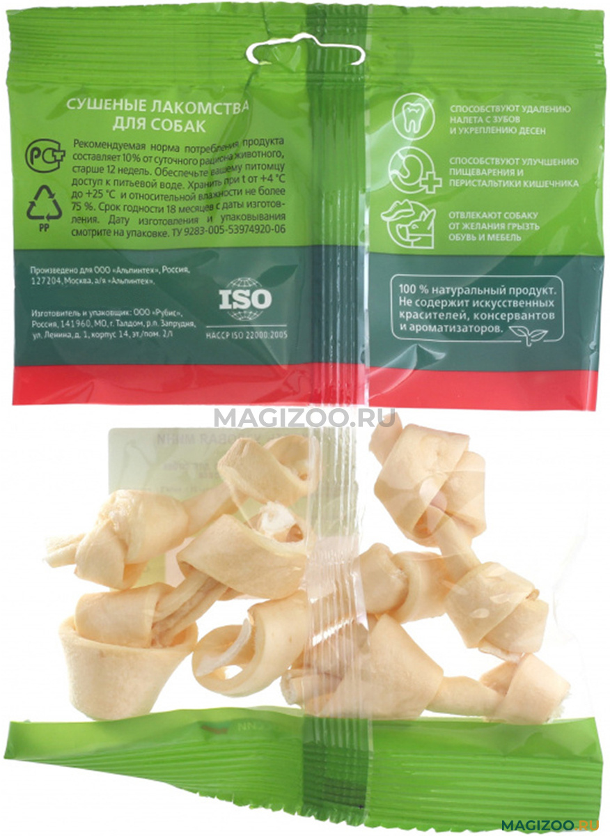 Высушенная говяжья кожа, свернутая в форме кости размером 4 – 6 см.
