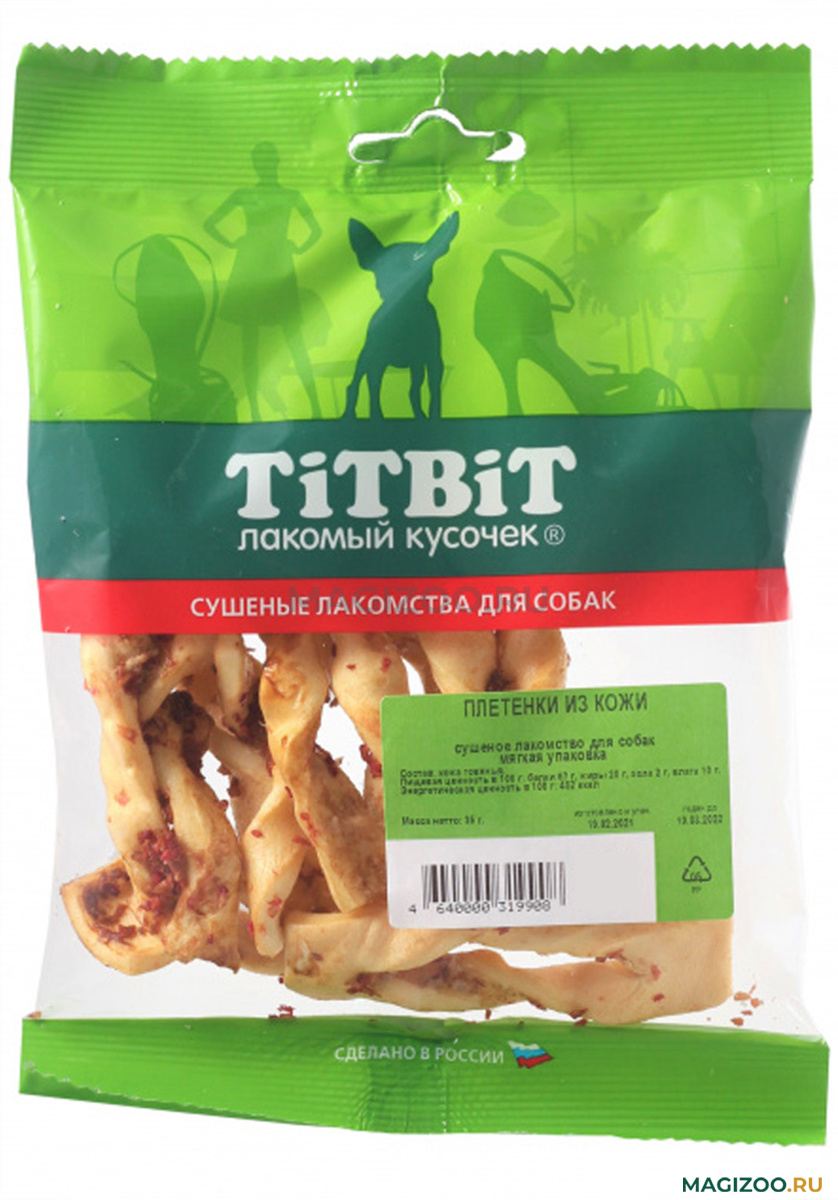 Лакомство для собак TiTBiT – плетенки из кожи.