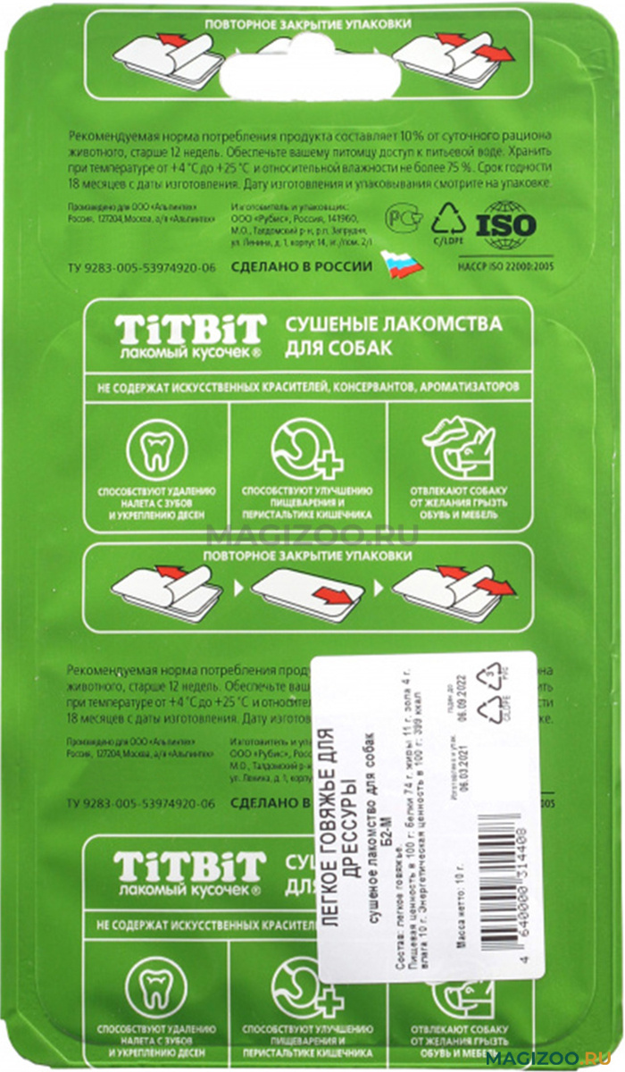 Информация о составе и ингредиентах, цветовом решении, технических и иных характеристиках, стране-изготовителе, внешнем виде и комплекте поставки товара носит справочный характер и основана на последних доступных к моменту публикации сведениях. Доставка данного товара осуществляется во все регионы РФ.Под брендом TIT BIT выпускается широкий ассортимент товаров (более 500 наименований), который позволяет индивидуально подбирать корм, лакомства и аксессуары именно для Вашего питомца.