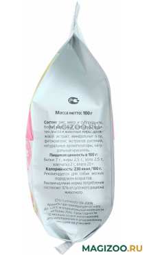 Рис, мясо и субпродукты, белок животный, клетчатка, лецитин, масла и животные жиры, дрожжевой экстракт, минеральные вещества, фитокомплекс экстрактов растений, натуральные ароматизаторы, натуральный краситель.