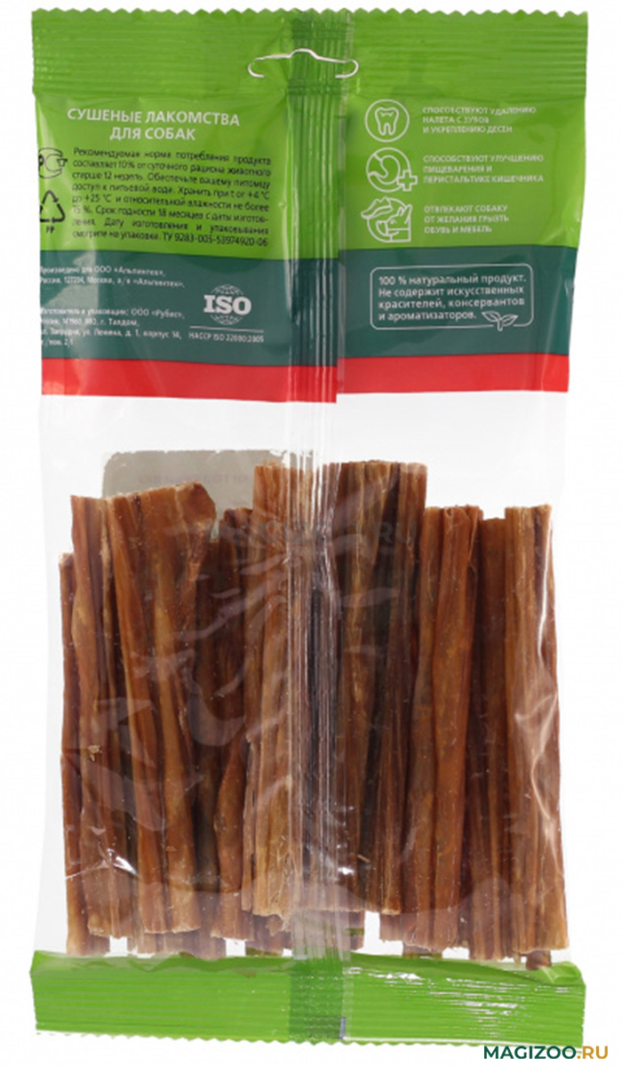 Очищает зубы у мелких пород собак, продукт полезен для стимуляции пищеварения.