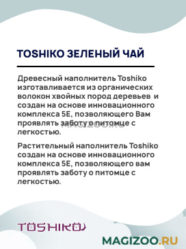 Древесный наполнитель Toshiko изготавливается из органических волокон хвойных пород деревьев и создан на основе инновационного комплекса 5E, позволяющего Вам проявлять заботу о питомце с легкостью.