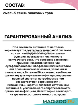 Натуральный, экологически чистый продукт, рекомендованный в зимнее и весеннее время кошкам, грызунам и птицам.