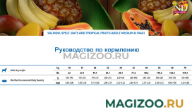 Полноценный сбалансированный низкозерновой рацион супер-премиум класса для взрослых собак средних и крупных пород с лососем, спельтой, овсом, манго, киви, анасом, папаей и бананом.