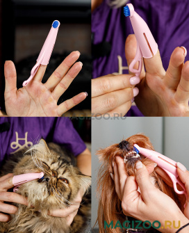Прочный пластик защитит палец владельца от травмы, если питомец решит прикусить щетку.