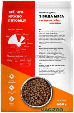 Полнорационный сухой корм экном класса ULTRA DOG’S для взрослых собак всех пород три вида мяса.
