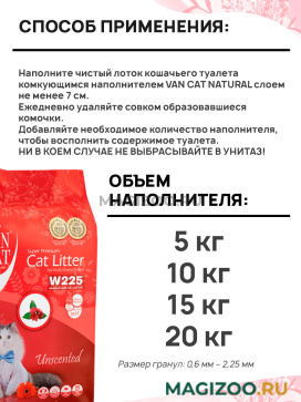 Наполните чистый лоток кошачьего туалета комкующимся наполнителем VAN CAT NATURAL слоем не менее 7 см.