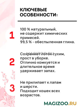 Комкующийся наполнитель из 100 % чистого бентонита, добывающегося на карьерах Турции. Не пылит, лапки Вашего питомца всегда останутся чистыми.