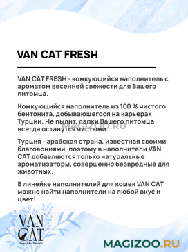 VAN CAT FRESH - комкующийся наполнитель с ароматом весенней свежести для Вашего питомца.