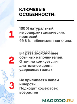 Комкующийся наполнитель из 100 % чистого бентонита, добывающегося на карьерах Турции. Не пылит, лапки Вашего питомца всегда останутся чистыми.