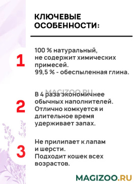Комкующийся наполнитель из 100 % чистого бентонита, добывающегося на карьерах Турции. Не пылит, лапки Вашего питомца всегда останутся чистыми.
