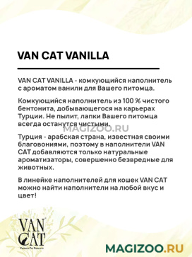 VAN CAT VANILLA - комкующийся наполнитель с ароматом ванили для Вашего питомца.