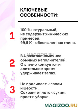Наполнитель не пылит, лапки Вашего питомца всегда останутся чистыми.
