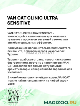 VAN CAT CLINIC ULTRA SENSITIVE - комкующийся наполнитель для кошачьих туалетов с ароматом весенней свежести и антибактериальным эффектом.