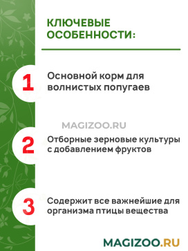 - Основной корм для волнистых попугаев.